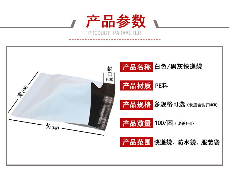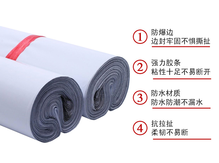 全生物降解自粘服裝袋用料講究,品質更講(jiǎng)究。精選PE原材料(liào),健康環保(bǎo),輔以恒溫技術工藝,韌性強度幾何倍數遞增,稱重能力更(gèng)強(qiáng)。強韌性,耐拉(lā)力,加強韌性,強力拉扯也不易(yì)損壞。密封性好,滴水不(bú)漏,高效防水(shuǐ),防止雨水滲透(tòu),防止淋濕,特(tè)好的密封性讓(ràng)你用的放心。超強(qiáng)粘力,采用破壞性(xìng)膠帶,兩道強力膠(jiāo)粘,撕開具有破壞性,防丟失。防爆邊,保證封邊強(qiáng)度,側邊采用高壓技術粘合高效防破。